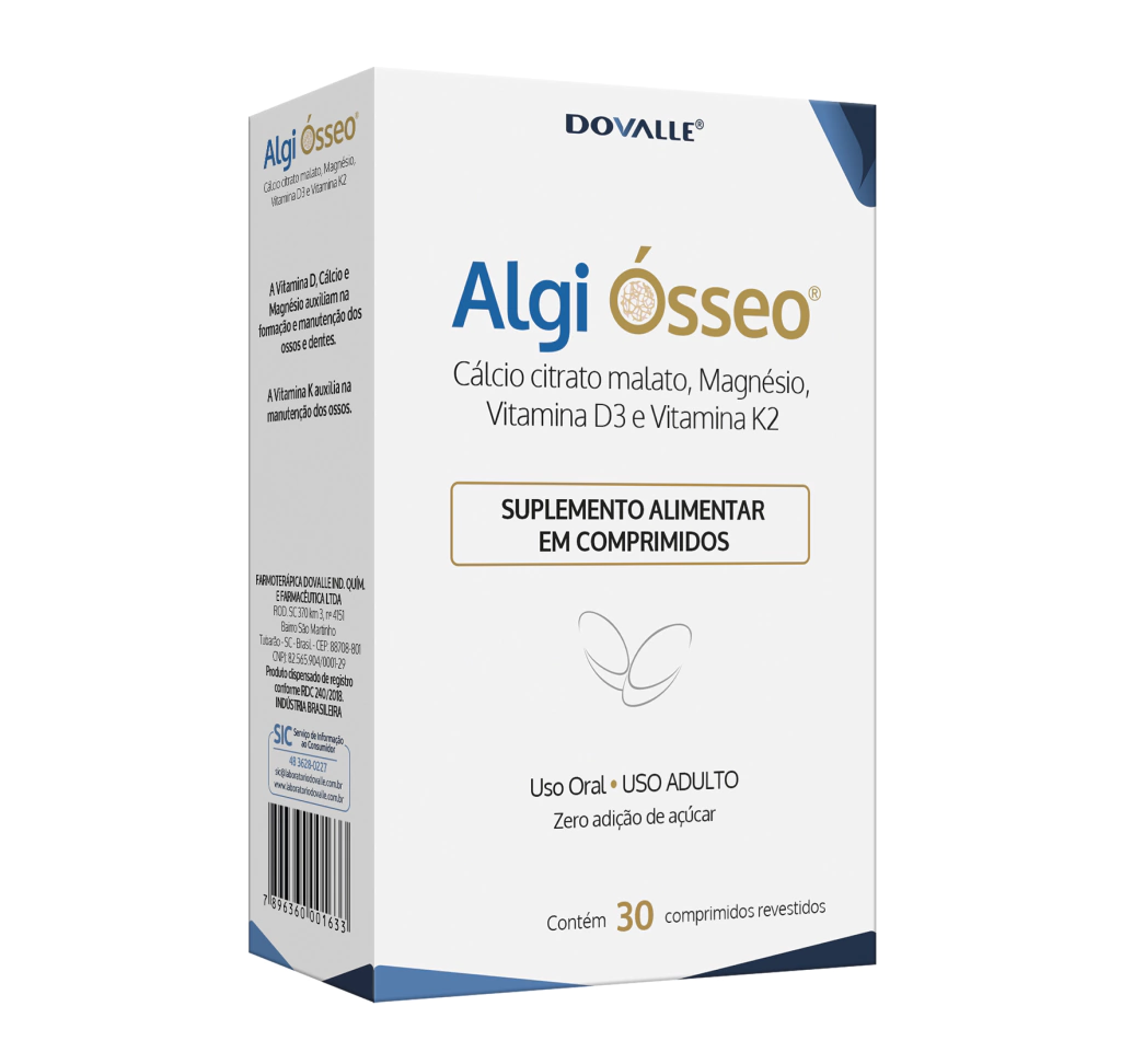 Algi Ósseo — 30 comprimidos revestidos. Uso oral. Apresentação prática para rotina diária, com dose padronizada por comprimido.