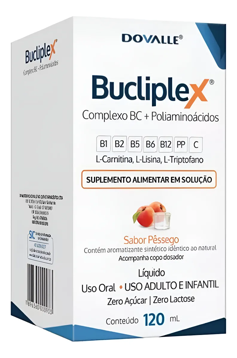 Bucliplex — frasco 120 ml. Uso oral. Apresentação líquida em frasco, prática para dosagem diária e organização no PDV.