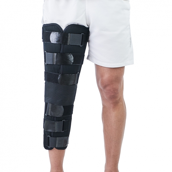 Este produto é indicado para imobilização do joelho em casos de afecções traumáticas do joelho (fraturas, entorses, lesões), instabilidade de Artroses e Artrites Reumatoides, substituição do aparelho gessado e uso pós-operatório.